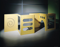 Variante del tavolo metamorfosi, con superficie specchiante. Diventa uno strumento di gioco ed esperimenti, di studio sulla percezione visiva, di variante e interferenza nella copia dal vero, di imprevedibilità nell’osservazione. E riflette il cielo.